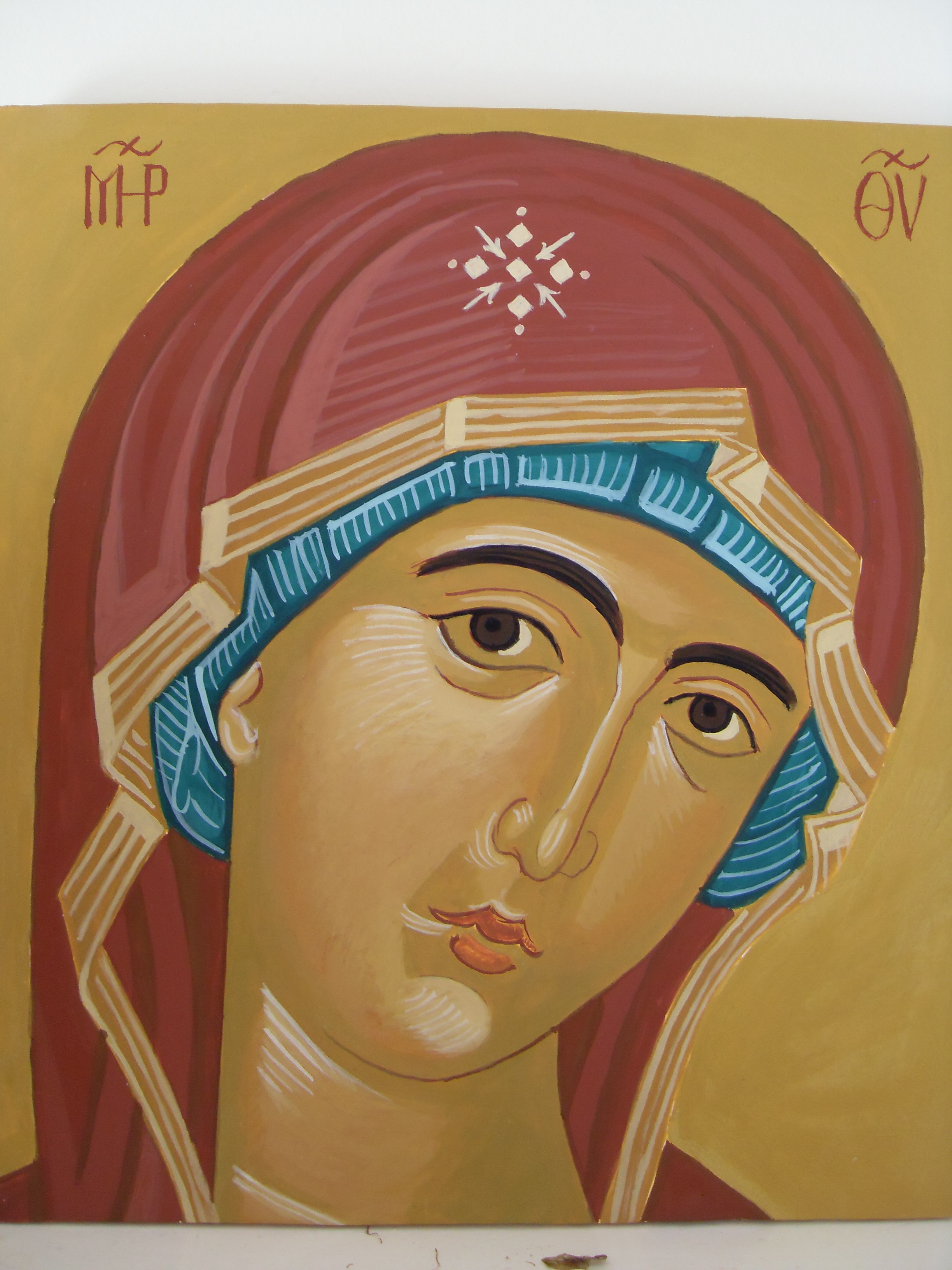 A friend just emailed me this, I haven’t seen it in years. It’s from an icon painting retreat I did in 2009 at the Poor Clares convent in Arundel. Our teacher, a little Chinese nun, taught us how to make up our paints from egg yolks and powdered natural pigments. It was all wonderfully medieval. No idea where the icon is now. If anyone knows, please get in touch.